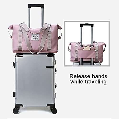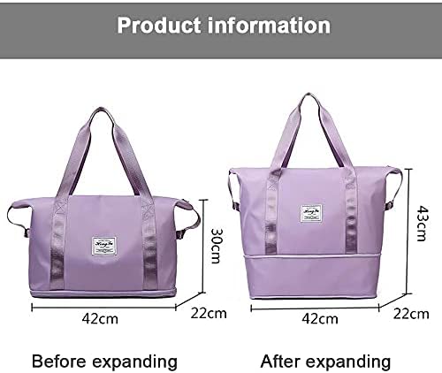 Eco Memos Travel Bags Sports Gym Bag with Expandable Space – Shoulder Weekender Overnight Bag for Women Travel Airplane Duffel Bag Dry Wet Separated Tote Bag (Blue)
