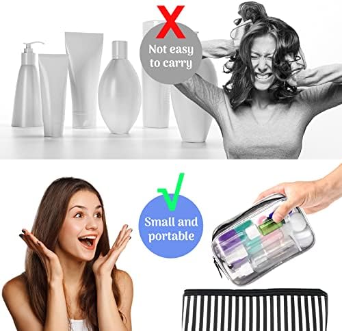 🏖️【Easy to Carry】These travel bottle set are packed in a clear makeup bag, which is light weight, small size, space-saving, easy to carry, and can be taken directly on the plane, ideal for travel, vacation, business trip, camping, gym, etc.
