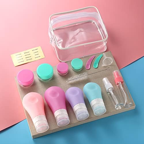 16 Pcs Travel Bottles Set for Toiletries, Gemice Silicone Travel Containers 89ml/60ml TSA Approved Leak Proof Refillable BPA Free Travel Accessories for Shampoos, Conditioner and Lotion (Pink)