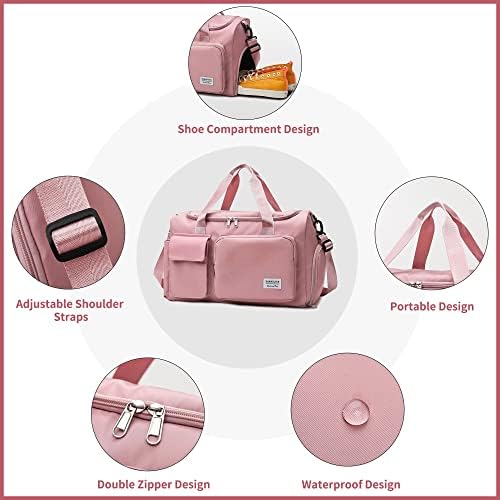 Aedcbaide Travel Bag,Gym Bag Womens,Duffle Bag with Shoe Compartment,Lightweight Foldable Weekend Bags for Women,Dry and Wet Overnight Bags for Women,Sports Bag for Woman Man(Pink)