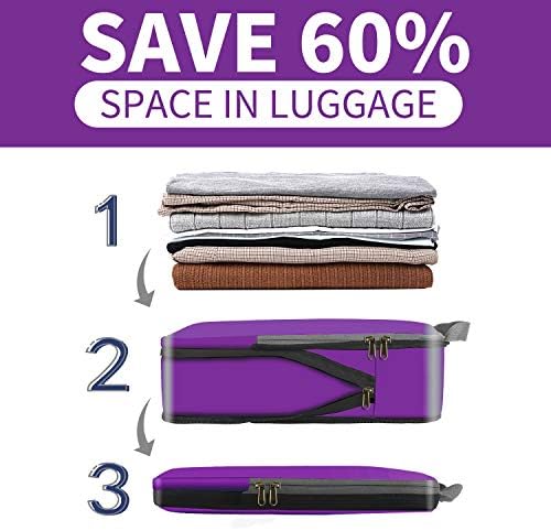 Amazon Brand – Eono Compression Packing Cubes, Luggage Organiser Set, Extensible Suitcase Organiser, Packing Organisers for Suitcases, Packing Cubes for Travel or Home Storage – Purple, 4 Set