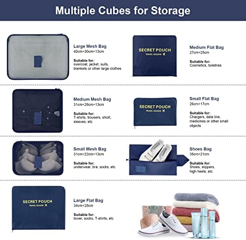 Amazon Brand – Umi Packing Cubes, 7PCS Packing Cubes for Suitcases, Travel Organiser Compression Packing Cubes, Travel Essentials Packing Cubes for Travel, Suitcase Organiser Bags, Dark Blue