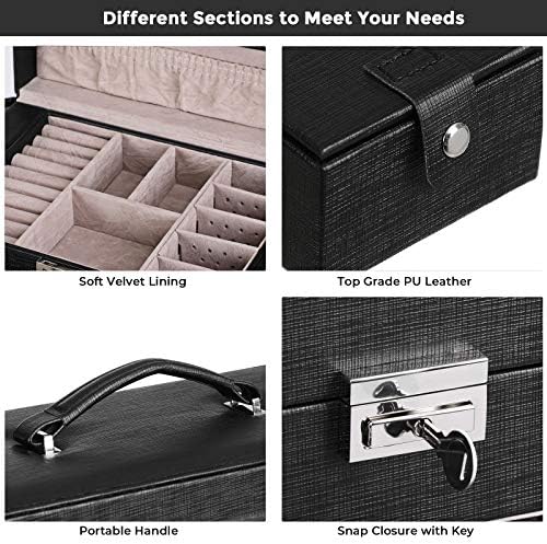 【SNAP CLOSURE WITH KEY & CONSIDERATE DETAILS】 You can use the key to lock the jewely box when necessary, which protects your privacy. Anti-rust metal latch is easy to manipulate. It opens up like a butterfly spreading her wings. The handle makes the jewelry case looks decent and easy to tote.
