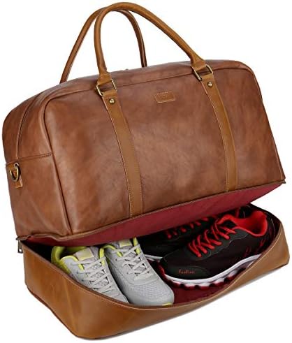 BAOSHA Faux Leather Travel Holdall Carry On Weekender Bag Overnight Travel Duffel Tote Bags for Men and Women with Shoe Compartment HB-38 (Brown)