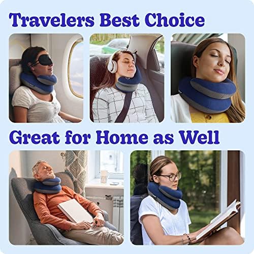 BCOZZY Neck Pillow for Travel Provides Double Support to The Head, Neck, and Chin in Any Sleeping Position on Flights, Car, and at Home, Comfortable Airplane Travel Pillow, Large, Navy