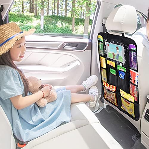 Car Seatback Organizer Kick Mats with 10″ Touch Screen Tablet Holder and 10 Storage Pockets for Kids Toddlers