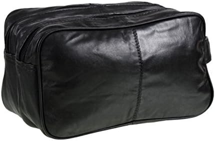 Genuine Real Leather Mens Wash Bag / Gym Bag / Overnight Bag (Black)