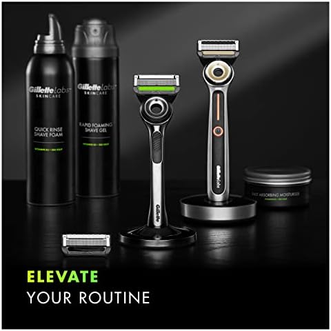 GilletteLabs with Exfoliating Bar by Gillette is the world’s first razor with exfoliating technology built into the handle, for a shave that’s as quick and easy as washing your face. It removes dirt and debris before the blades pass. 2D FlexDisc technology contours to your face to ensure comfort and contact with every stroke. Featuring Gillette’s best razor blades, this shaver is designed for a quick and easy shave. It also comes with a magnetic stand and lasts for up to 5 years. Use with GilletteLabs razor blade refills which are also compatible with the Gillette Heated Razor.