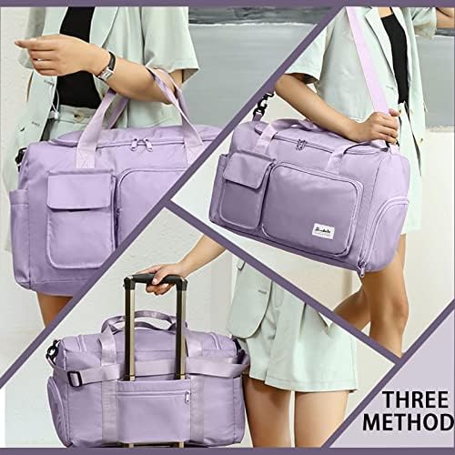 Gym Duffle Bag with Shoe Compartment Wet Pocket, Weekender Travel Bag with Shoulder Straps, Waterproof Sports Duffle Bag for Men Women, Lightweight Carry on Gym Bag (Purple)