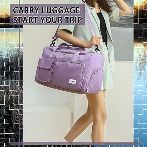 Gym Duffle Bag with Shoe Compartment Wet Pocket, Weekender Travel Bag with Shoulder Straps, Waterproof Sports Duffle Bag for Men Women, Lightweight Carry on Gym Bag (Purple)