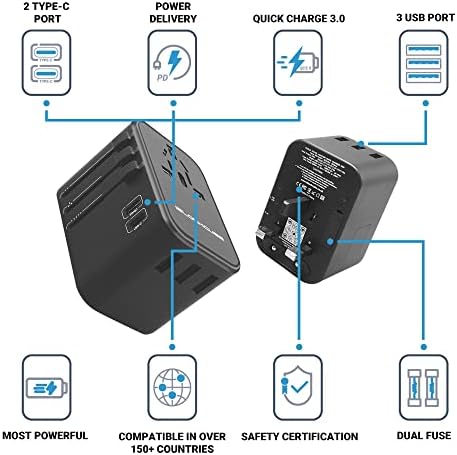DUAL TYPE-C PD/QC3.0 FAST CHARGING DESIGN – Compatible with 100-240V. It is created using the latest manufacturing methods. The dual C type uses the latest technology, 1 PD/QC fast charging + 1 Type-C + 3 USB. The Dual Type-C PD/QC 3.0 fast charging design is faster than the ports and more efficient. Up to 6 devices can be charged at the same time, such as iPad, iPhone, Android phones, tablets, digital cameras, and other gadgets.