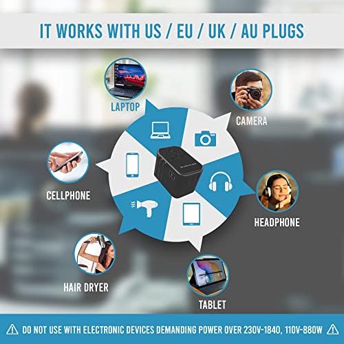 TRAVEL ADAPTER – There are four international plugs that cover over 150+ countries. It works with US/EU/UK/AU plugs. Primary and back-up safety are included in the double safety mechanism of the iBlockCube travel adapters and universal sockets. Two push bars need to be operated from the slider and a locking button to prevent the pins from being pushed back.