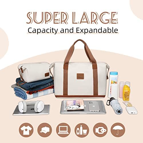 imiomo Travel Gym Duffel Bag – Weekender Bags for Women, Large Tote Overnight Bag, Sports Shoulder Hospital Bag(Beige)