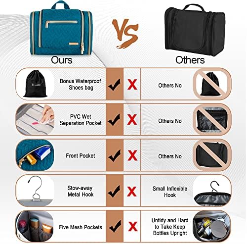 Lizzton Travel Hanging Toiletry Wash Bag for Women Men Large Makeup Organisers Bag with Compartments for Full Sized Toiletries (Turquoise Large)