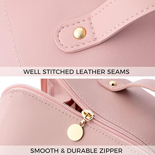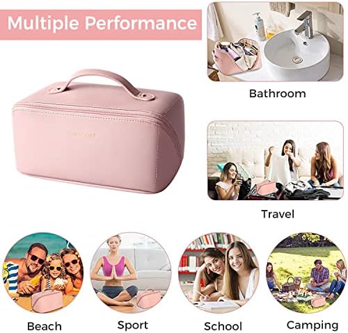 Luvtoo PU Portable Travel Cosmetic Storage Bag, Large Capacity Bag, Waterproof Storage Bag, Multifunctional Cosmetic Bag for Women Girl Pink Normal
