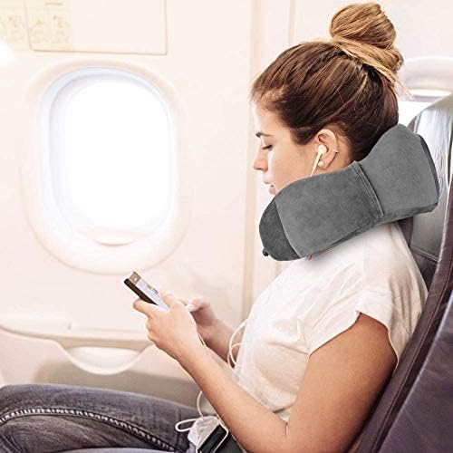 Luxsure Neck Pillow Memory Foam for Sleeping Comfortable Support Head Cushion Flight Pillow Special Designed Neck Chin Support for Plane & Car & Office (Grey)