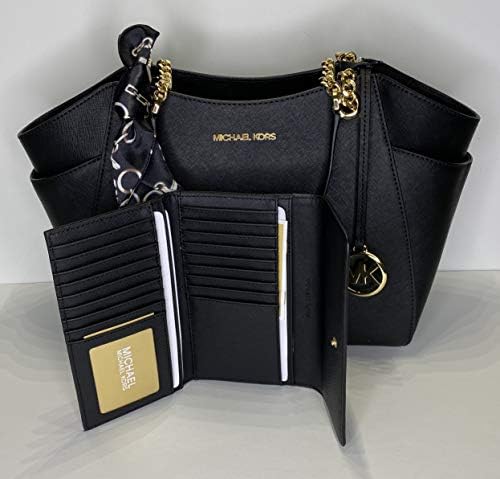 Bundle of 3 items: MICHAEL Michael Kors Jet Set Travel Large Chain Shoulder Tote bundled with Michael Kors Jet Set Travel Trifold Wallet and Couture du Jour Skinny Scarf