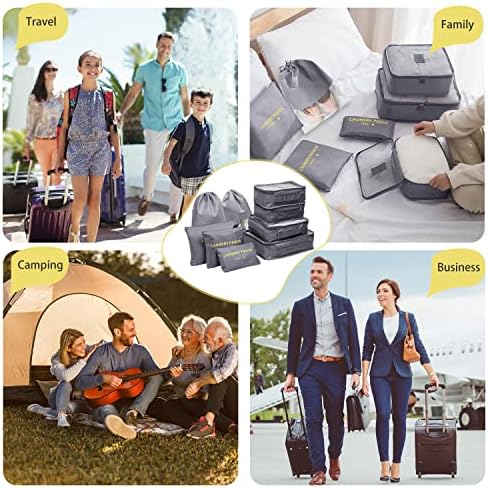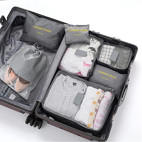 Packing Cubes Set for Travel Suitcases, 9 pcs Travel Organiser Packing Bags for Clothes Shoes Toiletries Travel Luggage Organizers Storage Bags (Grey)