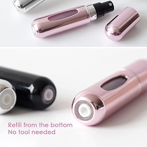 🛩 TRAVEL ACCESSORIES: Pocket size perfume atomiser spray bottle for about 3.15 x 0.63 x 0.63 inches and the volume is 5 ml. Lightweight and durable, making it ideal for putting in a clutch bag, handbag, pocket bag, gym bag, etc. With special non-slip design, this mini perfume bottle set can be taken on the plane.