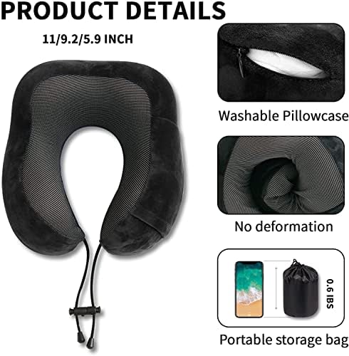 Portable Travel Pillow – Memory Foam Neck Pillow Support Pillow,Perfect Luxury Compact & Lightweight Quick Pack for Camping,Sleeping Rest Cushion (Black)