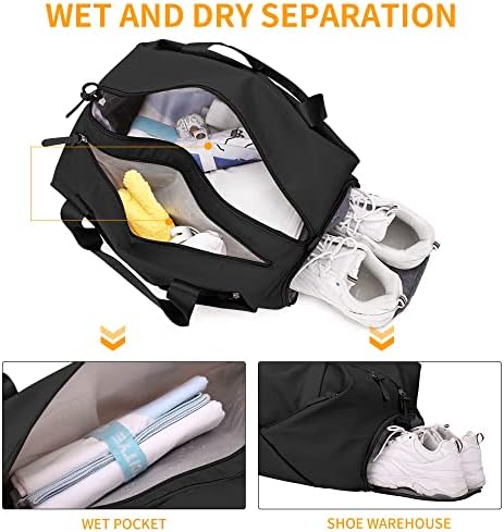 QKTYB Travel Bag with Shoes Compartment Gym Bag Waterproof Sport Duffel Bag Dry Wet Separated Gym Sport Bag Large Sport Storage Bag for Men and Women Sport Traveling Swimming Camping (Black)