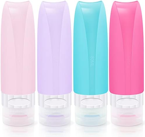 Silicone Travel Bottle, 4 Pack 80ml Portable Travel Containers Set, Refillable Squeezable Travel Accessories, For Shampoo Conditioner and Toiletries
