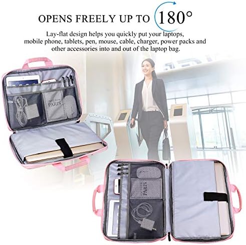 SIMBOOM 13 Inch Laptop Sleeve Bag with Shoulder Strap, Portable Tablet Briefcase with Accessories Organizer Pouch Compatible with MacBook Pro 13 inch, Acer / Asus / Dell / HP / Lenovo – Pink