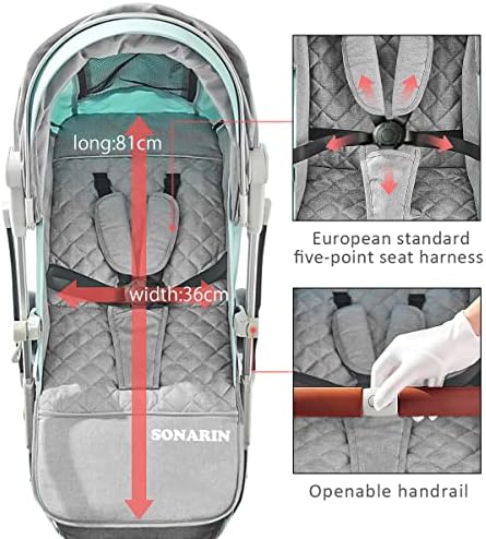 Size:Suitable from birth up to 15kg, length:66CM, width:48cm, height:98cm.Folding up:60CM*48CM*26CM. Great for Airplane,can be placed in any car boot.