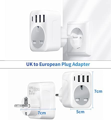 Compact & Lightweight — FSTravelP USB charger can be plugged in very tightly and hardly protrudes from wall outlets. This travel plug adapter is compact and lightweight, size : only 7*5*7 cm. European plug adapter is much convenient to travel all around the Europe. FSTravelP UK to EU Adapter will not take up your luggage space and easily fit into your luggage