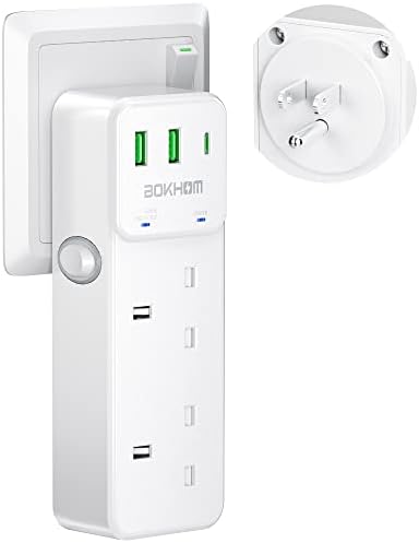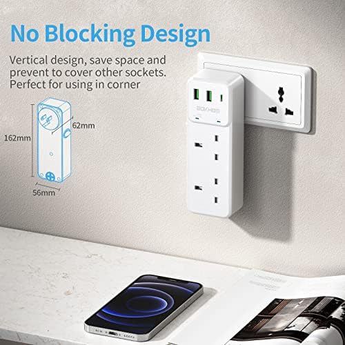 Surge Protection: Plug adapter is showing surge protection indicator light on the left. Adapter is built-in smart IC charging technology, ensured complete protection against short circuits and over voltages. The socket extension was made high quality PC refractory materials which also passes the very strict regulatory standard BS8546. More over, it provides safety children door. You can use BOKHOM plug adapter with peace of mind.