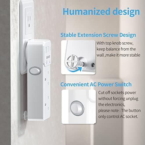 Stable Wall Plug: Double plug adaptor provides mounting screw behind the plug adapter. UK to US travel adaptor aims at securing firmly on the wall, you don’t need to worry about shaking or falling off. Wireless plug extension turns a single outlet into a multi-use source removing traditional power strip off floor, table or hides wire clutter to keep neat.