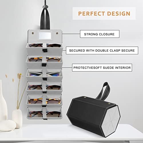 Unaone Sunglasses Organizer Case With Multi Slot Compartments Travel Glasses Case Storage Portable Sunglasses Storage Case Bag For Glasses Hanging Organizer Storage Box For Women Men