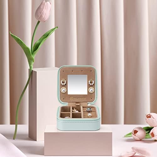 Vlando Travel Jewellery Box with Shiny PU Leather, Jewelry Storage Case with Soft & Thick Velvet for Women and Girls’ Rings Earrings Necklace Rings (Upgrade Version) Mint Green