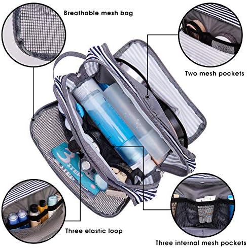 WANDF Wash Bag for Men Toiletry Bag for Men Shaving Dopp Kit Water-Resistant Toiletry Travel Bag Makeup Organizer for Men and Women (A-Blue Stripe)