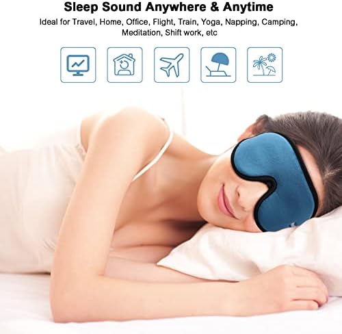 Wellsync Sleep Eye Mask, 3D Contoured Cup Sleeping Mask Blindfold, Eye Covers with Adjustable Strap, Block Out Light, Breathable & Soft for Traveling, Nap ,Camping Yoga, Includes Ear Plugs(Blue)